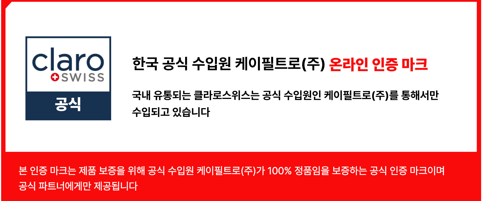 - 클라로스위스 지정 택배사는 CJ대한통운 택배입니다. - 5만원이상 구매 시 무료배송, 5만원 미만의 경우 3,500원의 배송비가 추가됩니다. - 배송 기간은 결제 완료 후 익일 ~3일 이내 배송됩니다.(토,일, 공휴일 제외) - 주문하신 상품 입고 지연시에는 입고지연 문자를 개별 연락 드리고 있습니다. | - 상품 수령일 기준 7일 이내에 신청 - 고객 단순 변심에 의한 경우 배송비(교환시 왕복배송비)는 고객 부담입니다. - 상품 불량 및 오배송 상품의 경우 배송비는 판매자 부담입니다. |